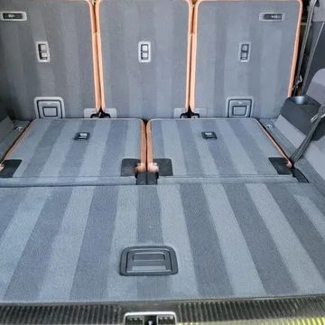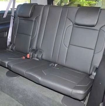 Thorough cleaning and conditioning of third-row seating area, including seats, seat belts, headrests, floor mats, and surrounding trim.